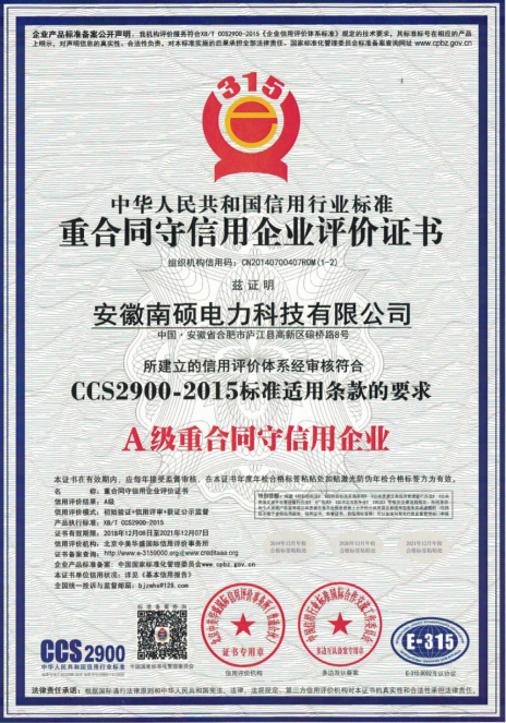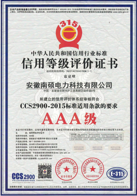 南硕电力 · 荣誉证书